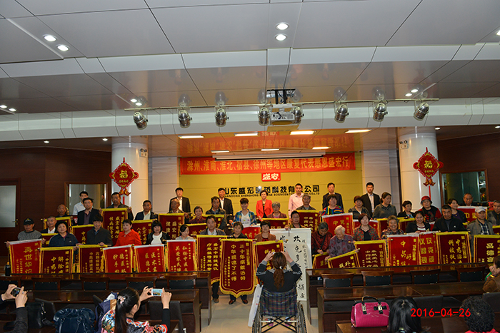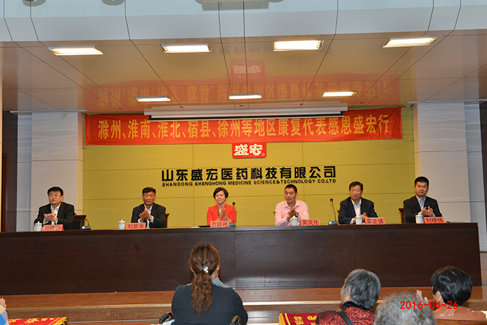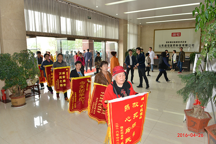 全國第155批腰椎間盤突出等頑疾患者赴盛宏醫藥謝恩 盛宏中藥顯神奇;攻克多年老頑疾。——這是安徽康復患者張文化發自內心的謝恩之語,并請書法大家陳懷嶺書寫裝裱后親赴盛宏敬獻公司領導。 2016年4月26日,來自安徽滁州、淮南、淮北、宿縣、江蘇徐州等地區,300多名腰椎間盤突出、股骨頭壞死、頸椎病、肝病、腎病、糖尿病等頑疾康復患者攜帶錦旗和字畫,不遠千里來到山東省濰坊市之盛宏公司總部謝恩。盛宏公司總經理王秋萍親自迎接這批謝恩者,并代表劉希山董事長向客人們致以親切的問候。安徽中藥提速服務中心主任黃鳳偉致感謝詞。盛宏中醫院院長劉庭海為大家作健康報告,為大家送去了中藥提速安全速效的康復知識。康復患者們懷著激動的心情分享了康復經過。 截止當天,赴盛宏謝恩的全國康復患者達到了27省、100多地市、155批,共計六萬多人次。 |