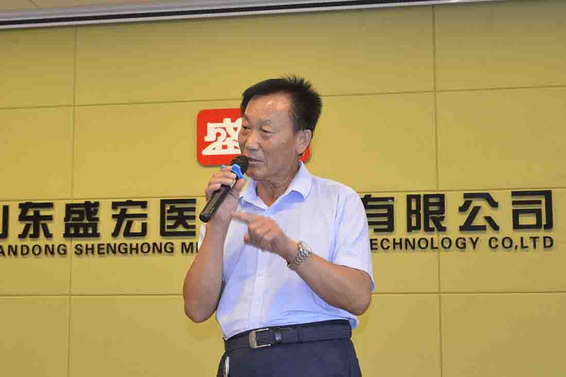 盛宏公司專家團團長、大校軍醫劉庭海為客人做醫學報告,向河南省各界朋友講解中藥提速透化療法。