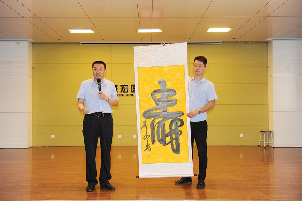 劉希山董事長將親筆書法“一生百年青年壽”、“一步登天藏龍福”、“觀音送子佛”以及專著《希山格言選》贈送客人。
