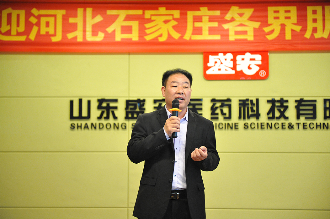 盛宏公司專家團團長、大校軍醫劉庭海為客人做醫學報告,向河北省各界朋友講解中藥提速透化療法。
