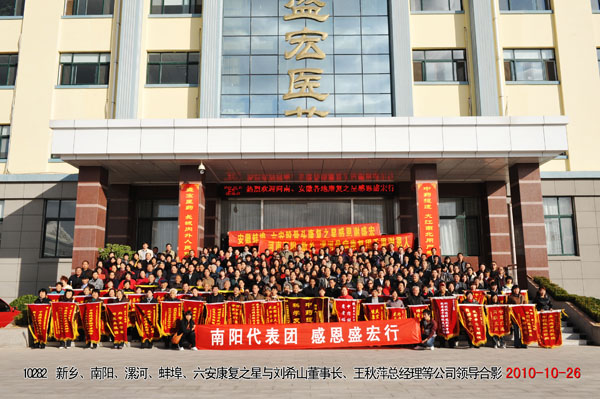 編者按:追蹤盛宏中藥提速,人們看到:成千上萬的股骨頭壞死、腰椎間盤突出、肝病、腎病等頑疾患者,躺在床上的站了起來,徹夜不眠的能安然入睡了,不能走動的能運動爬山了,長期不能上班的又回到了工作崗位……于是他們紛紛自發組織起來到盛宏總部謝恩,全國已經有25省、百余地市、103批、共計一萬三千多名到盛宏向中藥提速專利發明人劉希山教授獻錦旗,由此在盛宏公司內誕生了一個“萬旗店”。 2010年10月26日,河南南陽、新鄉、漯河,安徽蚌埠、六安的300多名頑疾康復患者不顧天氣降溫攜帶錦旗到達盛宏謝恩,劉希山教授、王秋萍總經理親自迎接并周到安排接待工作。 在公司會議室,王秋萍總經理致歡迎詞,新鄉中藥提速服務中心主任李福江代表康復患者致感謝詞。劉希山教授作中藥提速健康報告,他的通俗易懂的演講深深吸引了遠道而來的客人:“治療頑疾就是藥物與疾病作戰,譬如股骨頭壞死是一個連的兵力,我們口服喝下一個團的藥,經過消化吸收和血液循環之后,到達股骨頭部位后就只剩下一個班了,一個班能對付一個連嗎?針劑只需經過血液循環,但是到達病灶也最多剩下一個排了,藥物還是不能取勝。中藥提速療法通過經皮給藥,無需經過消化吸收和血液循環,將一個團全部直接送達病灶,兵力足、距離短、時間快,所以是用一個團來消滅一個連,這就太容易了!這也是中藥提速快速治愈頑疾的關鍵……”形象的比喻、精彩的演講,贏得了全場陣陣熱烈的掌聲。現場,工作人員還為中老年朋友們免費做了一次面部、手部的補水,快速柔嫩皮膚的補水效果讓客人們對盛宏健康新品——“五白補水嫩膚素”稱贊不已。 一位位康復患者爭先恐后獻上錦旗,一面面錦旗將主席臺覆蓋成“愛心臺”,一張張笑臉滿懷激情地述說著驅除病魔獲康復的快樂感受。