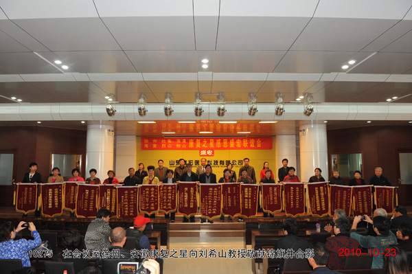 “中藥提速是治療骨病頑疾的終點站,其它方法都治不好了,奇跡往往都在‘終點站’出現了……” 這是康復患者發自肺腑的心聲,正是有著這樣奇特的療效,2010年10月23日,徐州、杜集、濉溪、海宮、烈山、相山等地的300名股骨頭壞死、腰椎間盤突出、頸椎病等頑疾康復患者攜帶錦旗到達盛宏謝恩,看望他們的救命恩人——古今名醫中治療頑疾最多、被譽為“當代華佗”的劉希山教授。由于劉希山教授發明的電磁治療儀療效獨特,所以上百萬人得到治療,因康復而感激不已、不遠千里來謝恩的代表今天已經達到了25省、百余地市、102批、共計一萬三千多名。 王秋萍總經理致歡迎詞,徐州中藥提速服務中心主任張元杰代表康復患者致感謝詞。劉希山教授作中藥提速健康報告,他以通俗的比喻來闡述世界醫學史上的第三次用藥革命的重大意義:“治療頑疾就像一次長途跋涉,口服藥物如同行走千里,因為它要多走消化吸收和血液循環兩條彎路才到病灶。西方針劑可以少走五百里,因為它只需經過血液循環一條彎路。我們研究成功的經皮給藥如同一公里路程,因為它無需經過消化吸收和血液循環,直達病灶!這就是中藥提速快速治愈頑疾的關鍵!……”劉希山教授還現場為口腔潰瘍、牙齦炎、鼻炎等患者進行免費治療,給大家贈送各類藥品和洗護用品,他精彩的報告和不計名利、孜孜奉獻的大愛精神感動了所有的客人,贏得了全場一次次雷鳴般的掌聲。 一位位康復患者爭先恐后獻上錦旗,滿懷喜悅地上臺分享使用中藥提速獲得康復的感受。康復患者范后順參觀了盛宏公司后對“咱們是一家人”的盛宏理念體會深切,他激動地說:“識得廬山真面目,盛宏療效暖人心;中藥提速治頑疾,藥到病除是目的!”