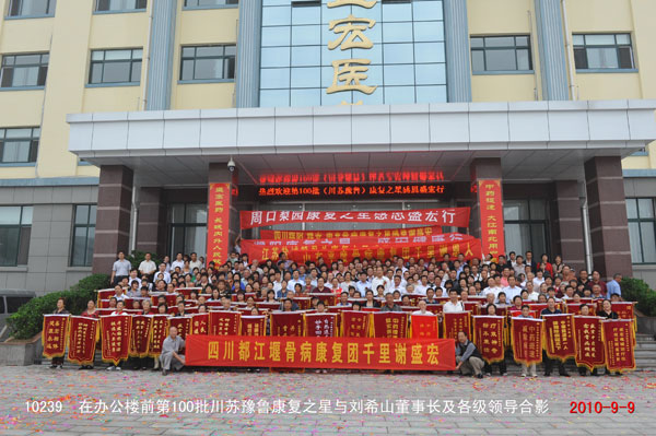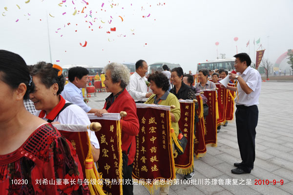 今天,四川、江蘇、河南、山東的300多名頑疾康復患者分乘七輛大巴攜帶錦旗而來,他們得的是股骨頭壞死、腰椎間盤突出、頸椎病等頑疾。在感恩行現場,康復患者爭先恐后擁向劉希山董事長,獻上錦旗并鞠躬感謝。張國春,平度人,2003年患股骨頭壞死,不能蹲起、不能自理、痛苦不堪,2004年開始使用中藥提速,治療半年時間康復,可以正常活動與工作,至今未復發。張先生向劉希山教授深深鞠躬致謝……用戶熱淚盈眶、真誠謝恩的一幕幕場景令人震撼!通過使用電磁治療儀或自熱透化帶而康復的謝恩者今天正好是第100批,涵蓋了25省、100余地市,總人數超過了12000名。