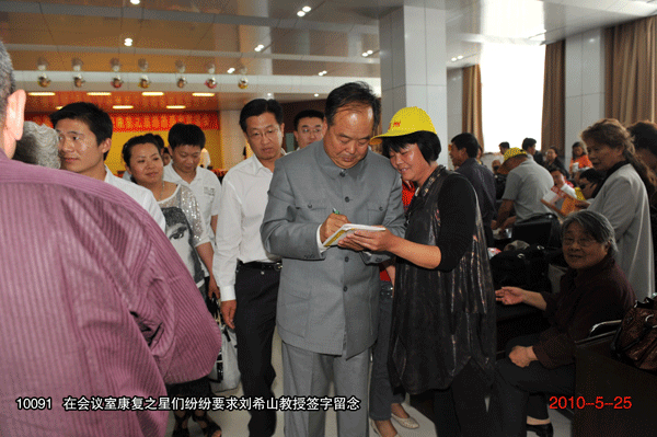 八方聚鳶都,千里謝盛宏。謝恩的患者絡繹不絕,2010年5月25日,安徽淮南、六安、亳州又有近300名康復患者攜帶錦旗到達盛宏感謝,至此到盛宏總部謝恩的康復患者代表達到了25省90余地市70批共計7400多名,百萬股骨頭壞死、肝病、腎病、腰椎病等頑疾患者因使用中藥提速系列產品而獲得健康。 為什么很多醫藥企業謝絕用戶參觀?為什么盛宏公司敞開大門歡迎用戶參觀,并熱情接待著一批批患者代表?怎樣解決看病難、看病貴、特別是看病無效的三大問題? 劉希山教授的中藥提速報告解答了來賓們的這一個個疑問。“沒有正確理論指導的實踐是盲目的實踐,不貼近市場的創新是盲目的創新”、“在別人眼里看來根本做不到的事,但你只要大膽嘗試,也可能成功”。 劉希山教授沿用了古代“砭、針、灸、藥”的中醫治病原理,采用其方法,不用其做法,大膽借助高科技電磁、電熱、遠紅外、強透化、藥氣離子導入等現代技術,發明了內病外治的中藥提速療法,對治療股骨頭壞死、肝病、腎病、腰椎間盤突出等頑疾實現了新突破,先后榮獲了 31項國家專利。 劉希山教授告訴大家,遵照國家相關規定,我們沒有宣傳中藥提速療法在治療肝病、腎病、中風后遺癥、癌癥等方面的特別療效,但是在十余年的臨床實踐中,一位位肝硬化腹水、慢性腎炎、前列腺炎、中風后遺癥、腫瘤等頑疾患者獲得了康復,證明中藥提速對這些頑疾有著辨證施治、速克頑疾的神奇功效。 劉希山教授安排工作人員將嫩膚素化妝品打開讓全場客人使用,并贈送大家《希山格言選》、《商海哲學》及其它禮品,用過盛宏“嫩膚素”的一位位康復患者精神面貌煥然一新,他們手捧禮品,激動不已。 報告結束,全場響起經久不息的掌聲。康復患者們紛紛 向劉教授獻上錦旗,大家緊握 劉教授的雙手,或聲淚俱下,或鞠躬感謝,或分享治療經驗和康復感受,醫患之情如魚水交融,感人至深。 劉教授走出會場時,大家紛紛同 劉教授激動握手,很多患者擠過去請 劉教授給予簽字留念。