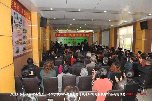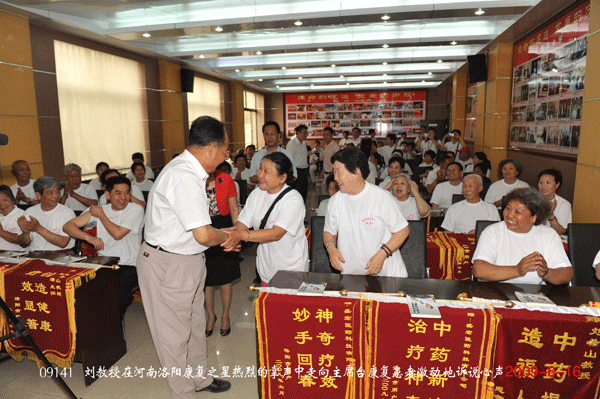 王秋萍總經理首先致熱情洋溢的歡迎詞。商丘服務中心主任楊緒英、洛陽服務中心主任王濤、西安服務中心副主任張文分別代表康復患者向盛宏致感謝詞,并盛贊中藥提速第一人 劉希山教授為“當代華佗”。山東省政協聯合日報社主 任張樸先生在主席臺就坐。