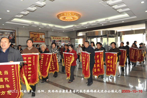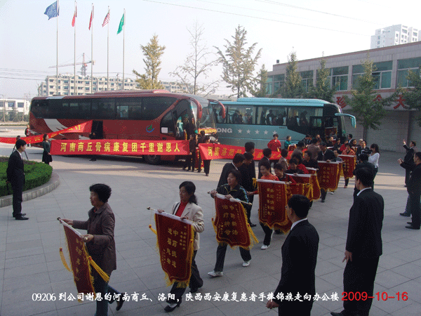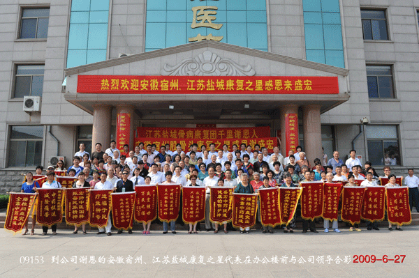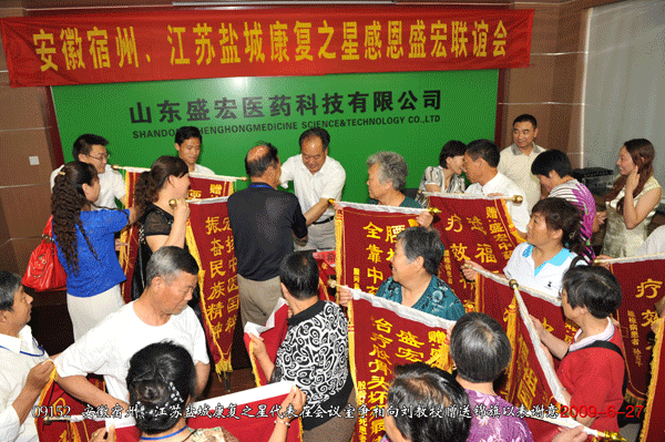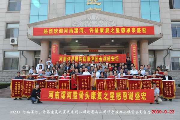 舉國歡慶六十華誕,盛宏笑迎六千嘉賓。2009年10月16日,正值“雙節”過后,又是第十一屆全運會開幕式在山東舉行的好日子,河南商丘、洛陽、陜西西安的130余名頑疾康復患者滿懷感激之情,不遠千里到達盛宏公司謝恩。至此,到盛宏謝恩的患者已達25省、80余城市共計52批近6000人。千千萬萬股骨頭壞死、頸椎病、腰椎間盤突出、關節炎、肩周炎等頑疾患者的康復鑄就了盛宏電磁治療儀“骨病克星”的口碑。