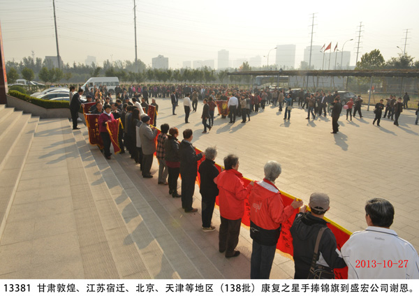 截至該日,全國已經有27省、100多地市、138批共計四萬多康復患者到盛宏公司謝恩,盛宏現存有謝恩錦旗已經達到13000多面。