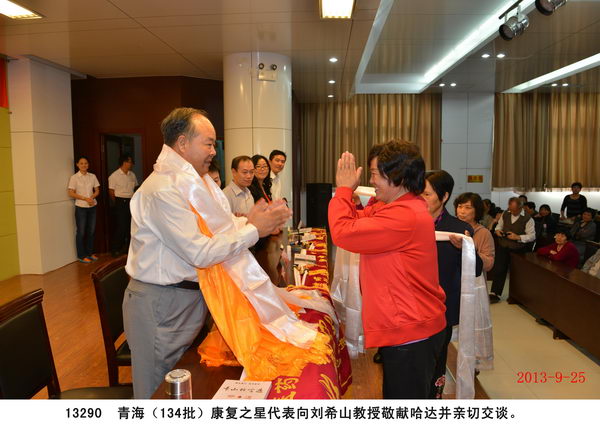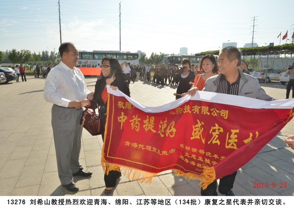 楊老是盛宏電磁治療儀治愈的千千萬萬患者中的一個代表,每一位謝恩者都有著類似的康復經歷和感恩之情。正如劉希山教授所說:“你要得到大家的掌聲,你就要把歡樂送到大家手中!”各地康復患者們紛紛將謝恩錦旗獻上劉希山教授,而青海包括藏民在內的各族同胞還向劉希山教授獻上了象征著最高敬意的金色哈達以及象征著純潔無暇的白色哈達——此時,劉教授的大愛和康復患者的真情交融在一起,這一瞬間喚醒了人們的真情,讓現場很多人熱淚盈眶。