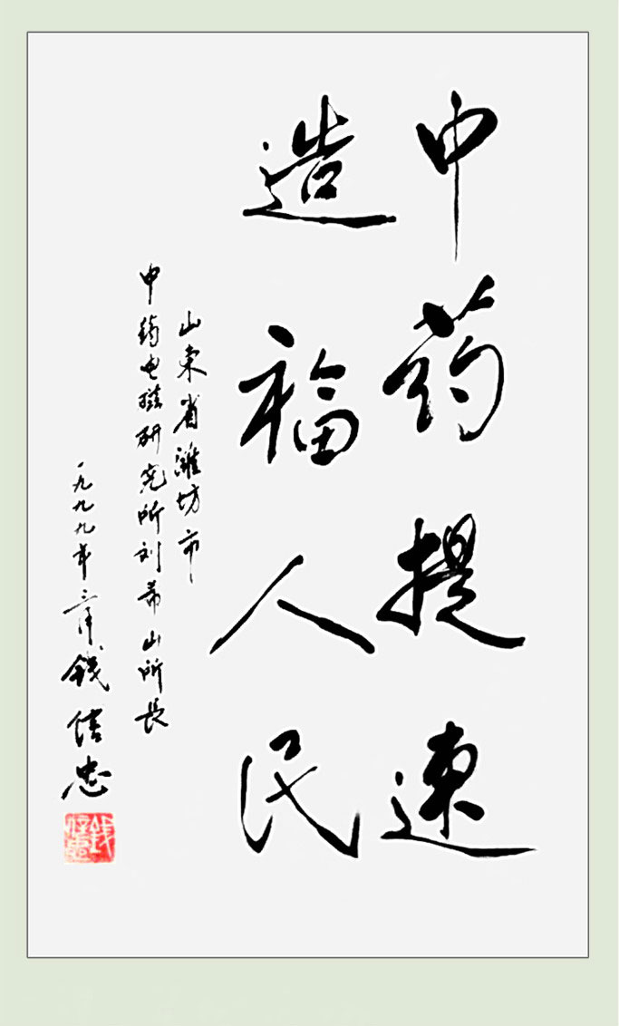 國家衛生部原部長錢信忠為劉希山教授題詞
